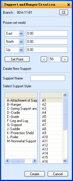 点击菜单SUPPORT/CREATE,或者点击工具栏
