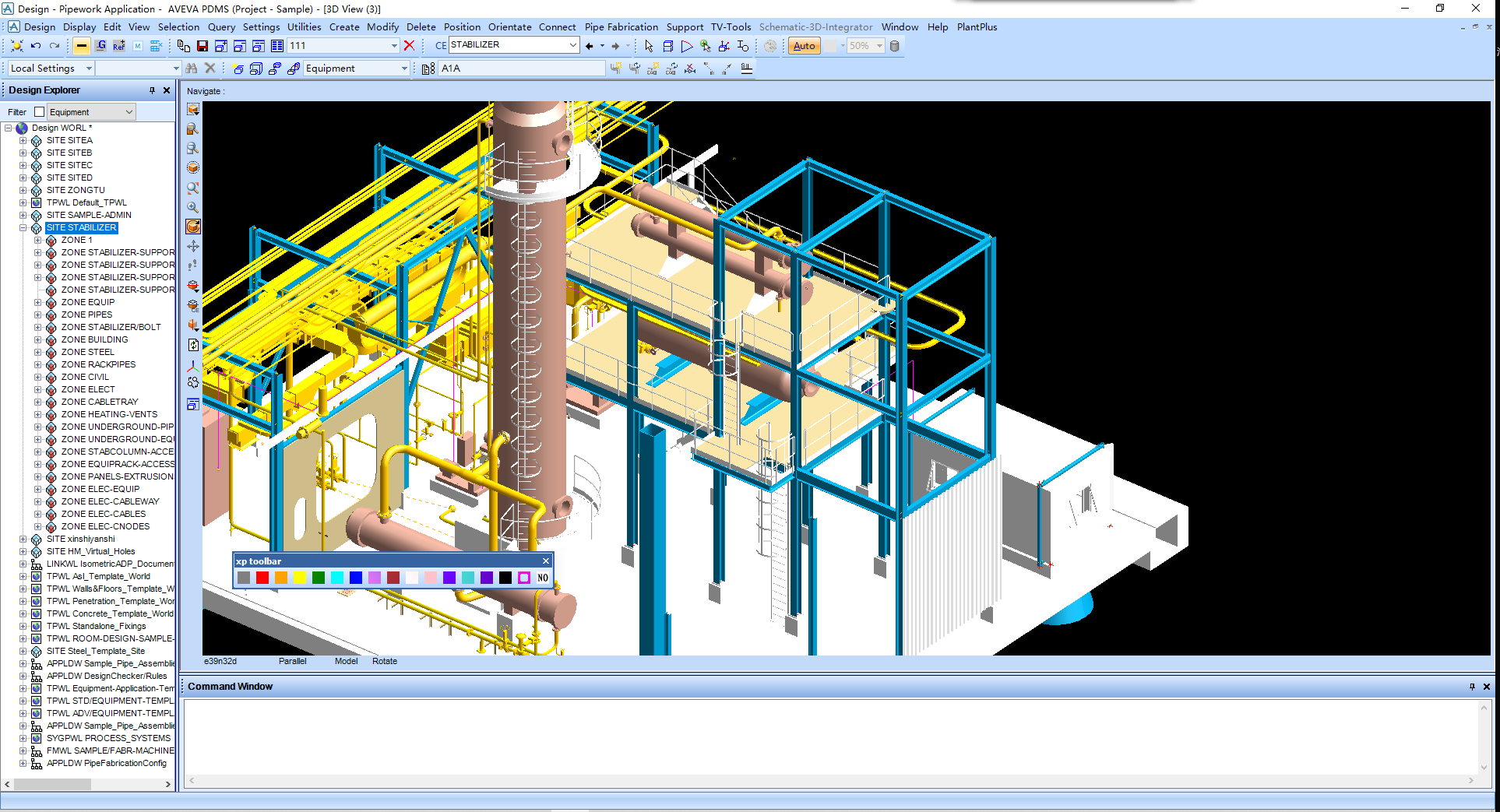 PDMS能够确保不同专业的设计团队并行工作,共同开发全套的工厂或电厂数字元化模型。每个专业都工作于自己专门的三维环境中,但仍然能够查看其他专业所有相关的设计工作。